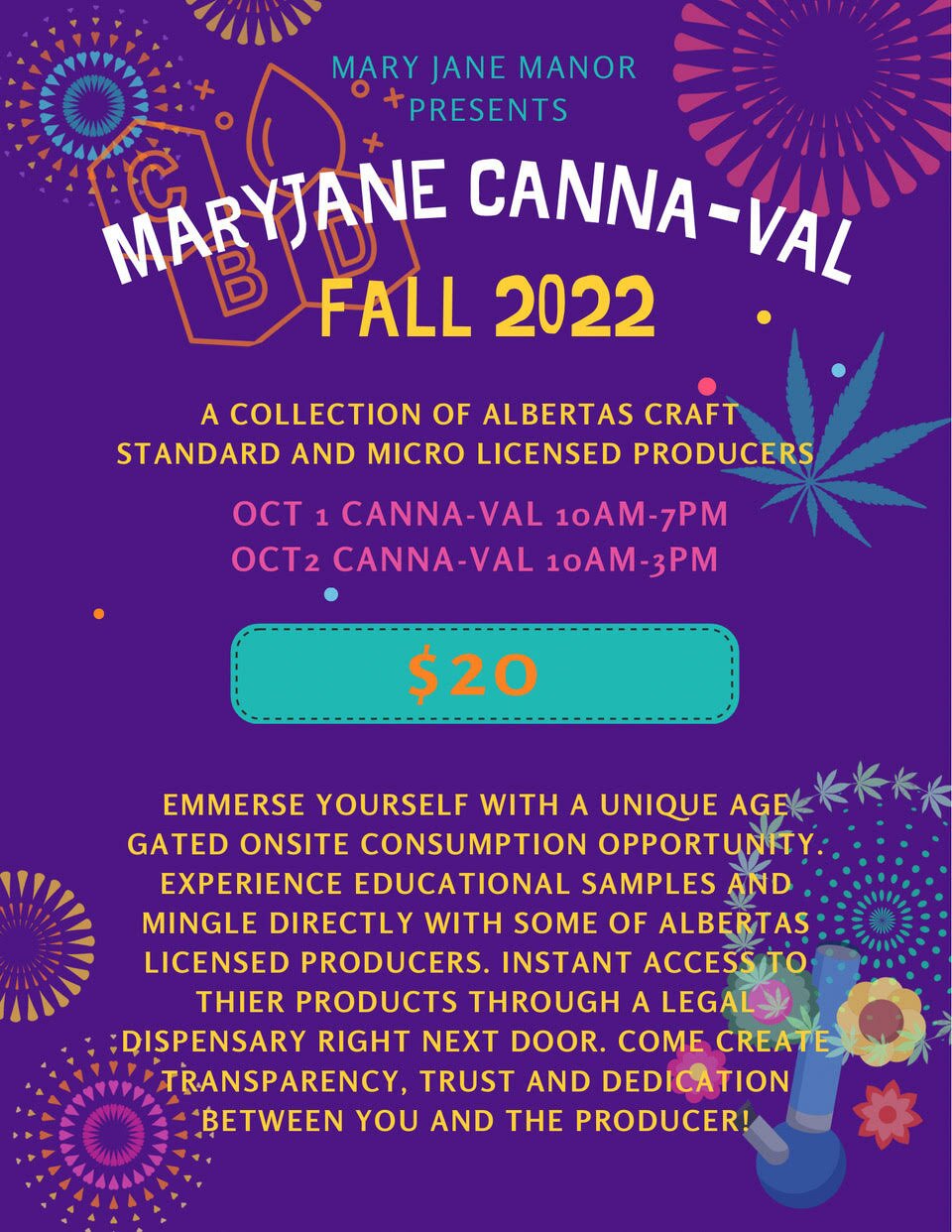 - Oct 1 canna-val 10am-7pm